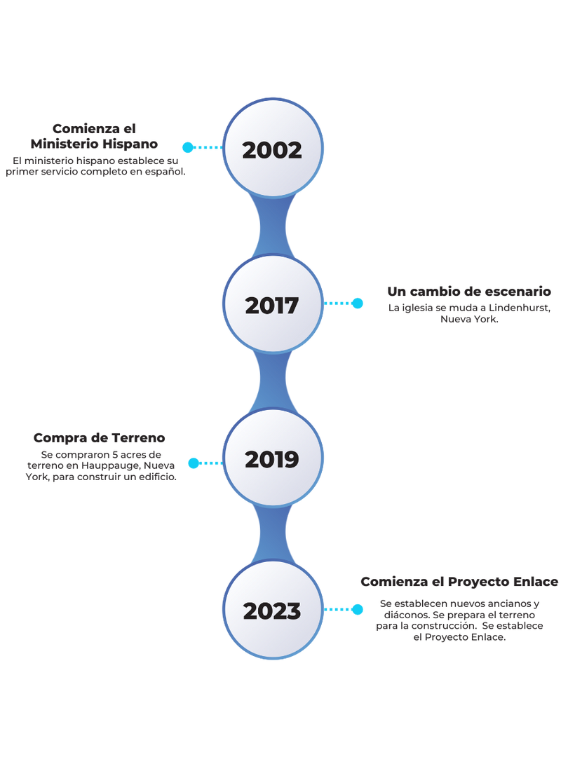 El objetivo principal del Proyecto Enlace es llegar a más personas para que puedan conocer el amor de Dios. Para lograr este objetivo, recaudaremos fondos para construir un nuevo edificio en Hauppauge.